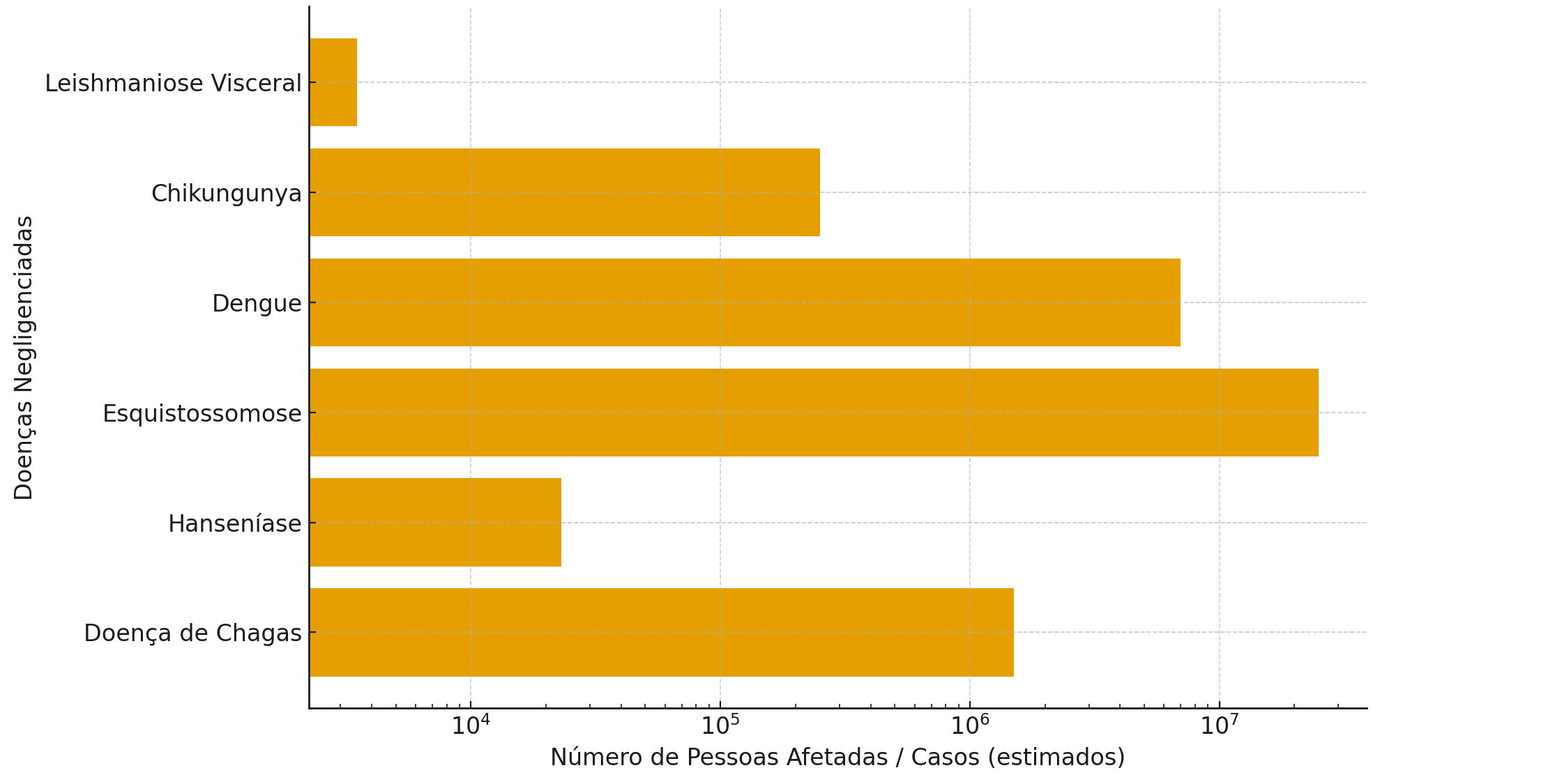Segundo a Organização Mundial da Saúde (OMS), mais de 20 patologias integram essa categoria, entre elas a esquistossomose, a doença de Chagas, a leishmaniose, a hanseníase e a filariose linfática.